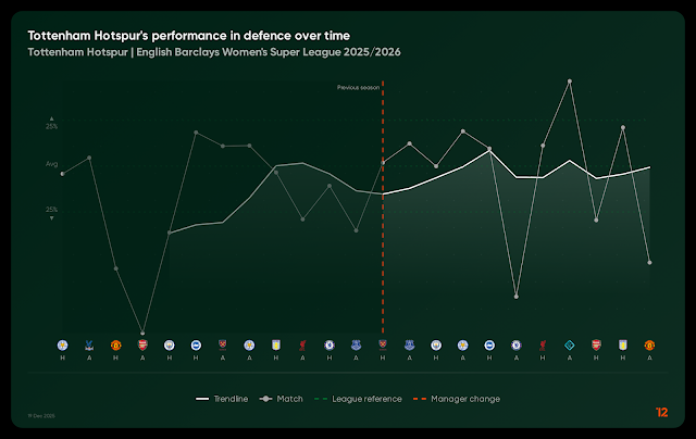 So where have things improved? It is, in no small part, about the quality of chances. The data show that Tottenham Hotspur women are now creating 2.27 high opportunity shots per game in the WSL. With Tandberg, Holdt and England around, that can lead to goals. Last season, the team was struggling to turn possession into shots.